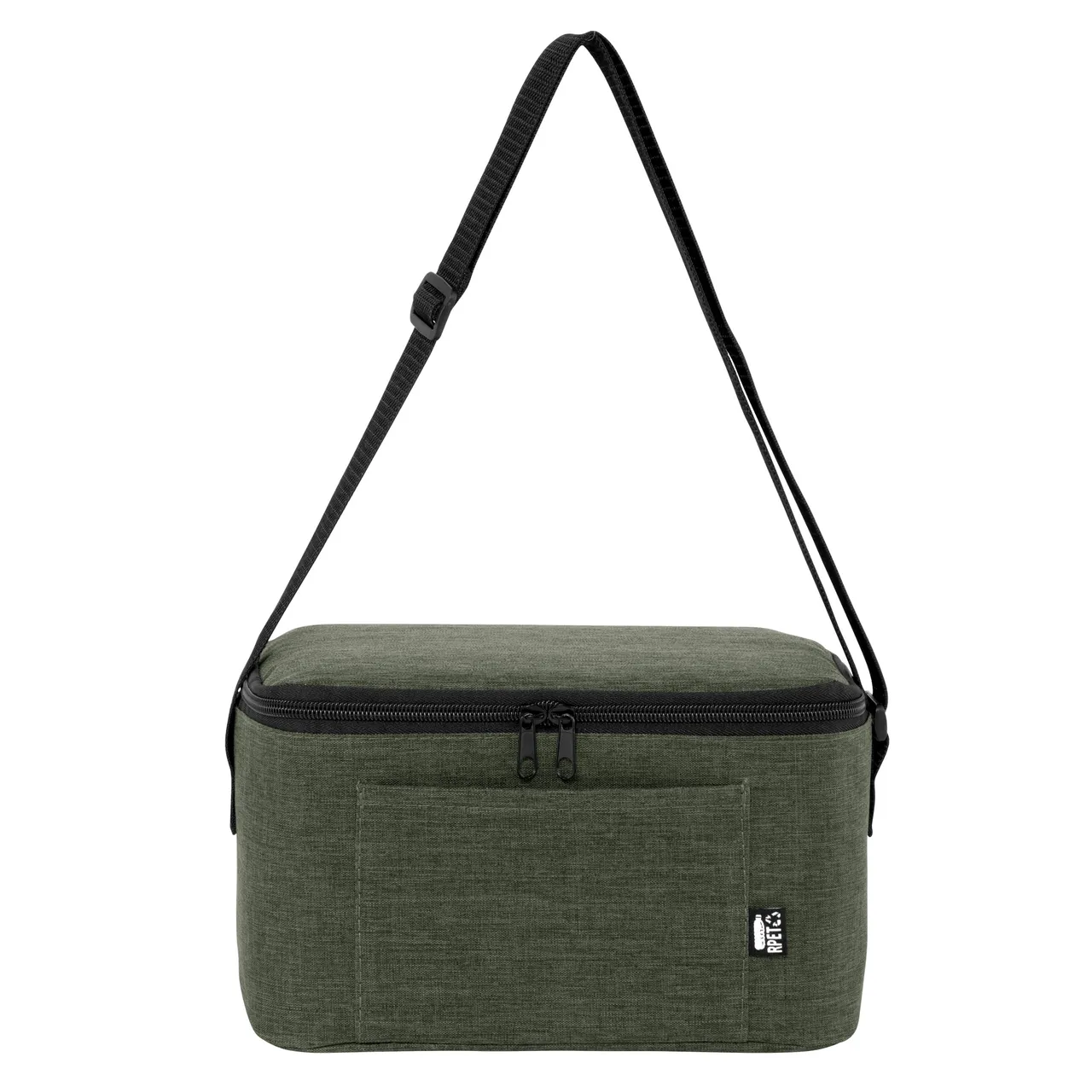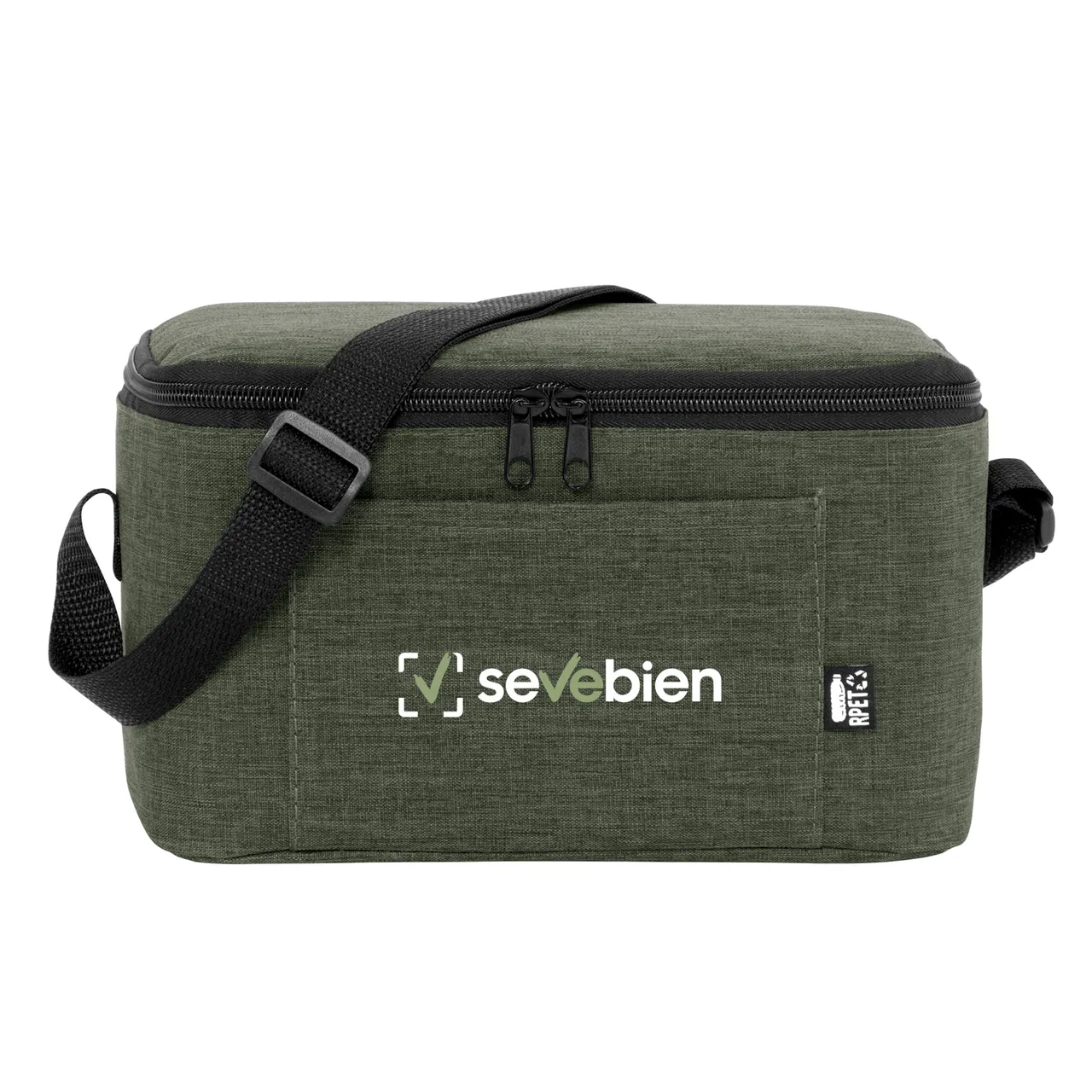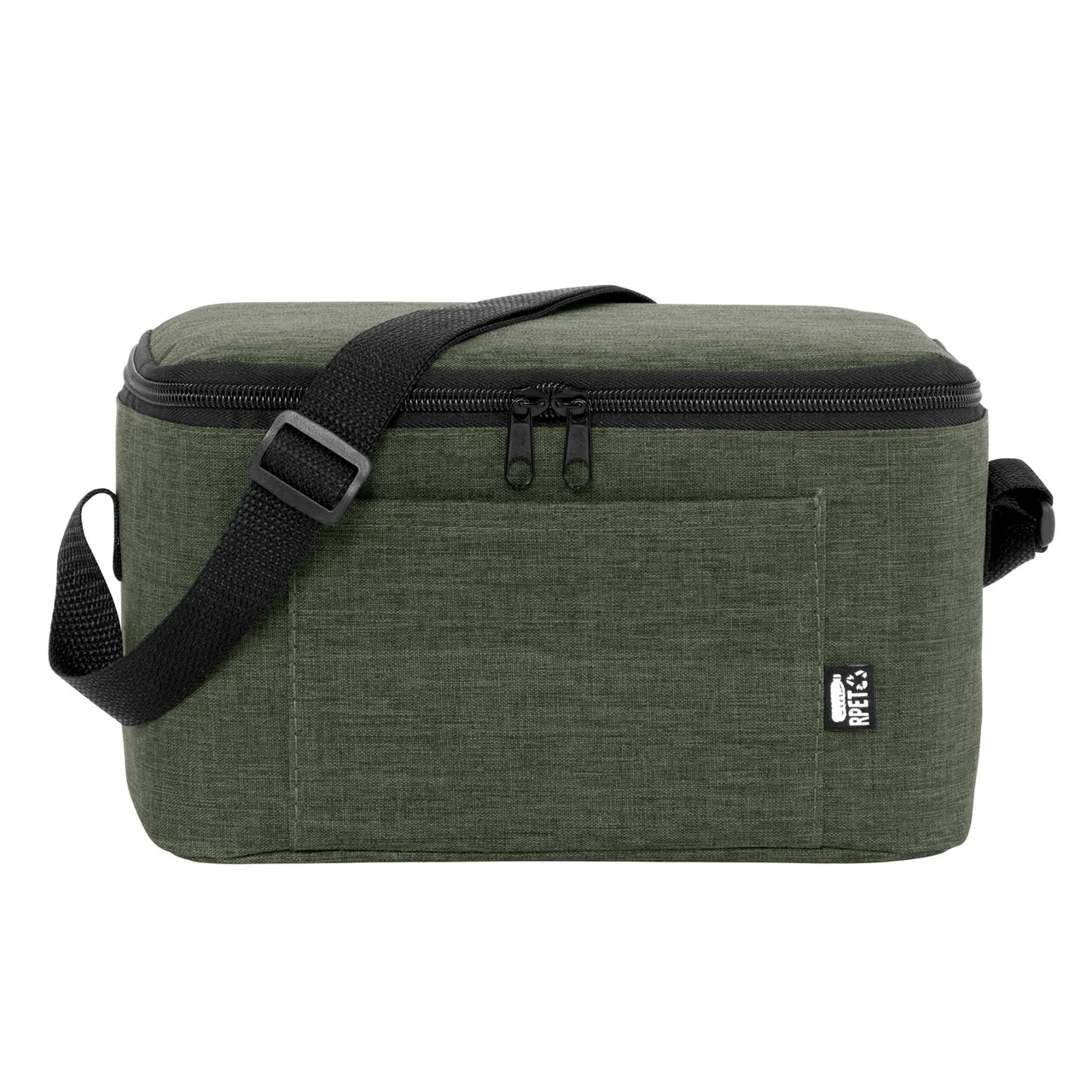 Compacto, práctico y siempre listoBolso térmico. Cierre superior bidireccional. Correa regulable con hebillas plásticas. Bolsillo frontal. Capacidad ideal para transportar hasta 6 latas.Medidas: 26 x 16 x 14 cm.